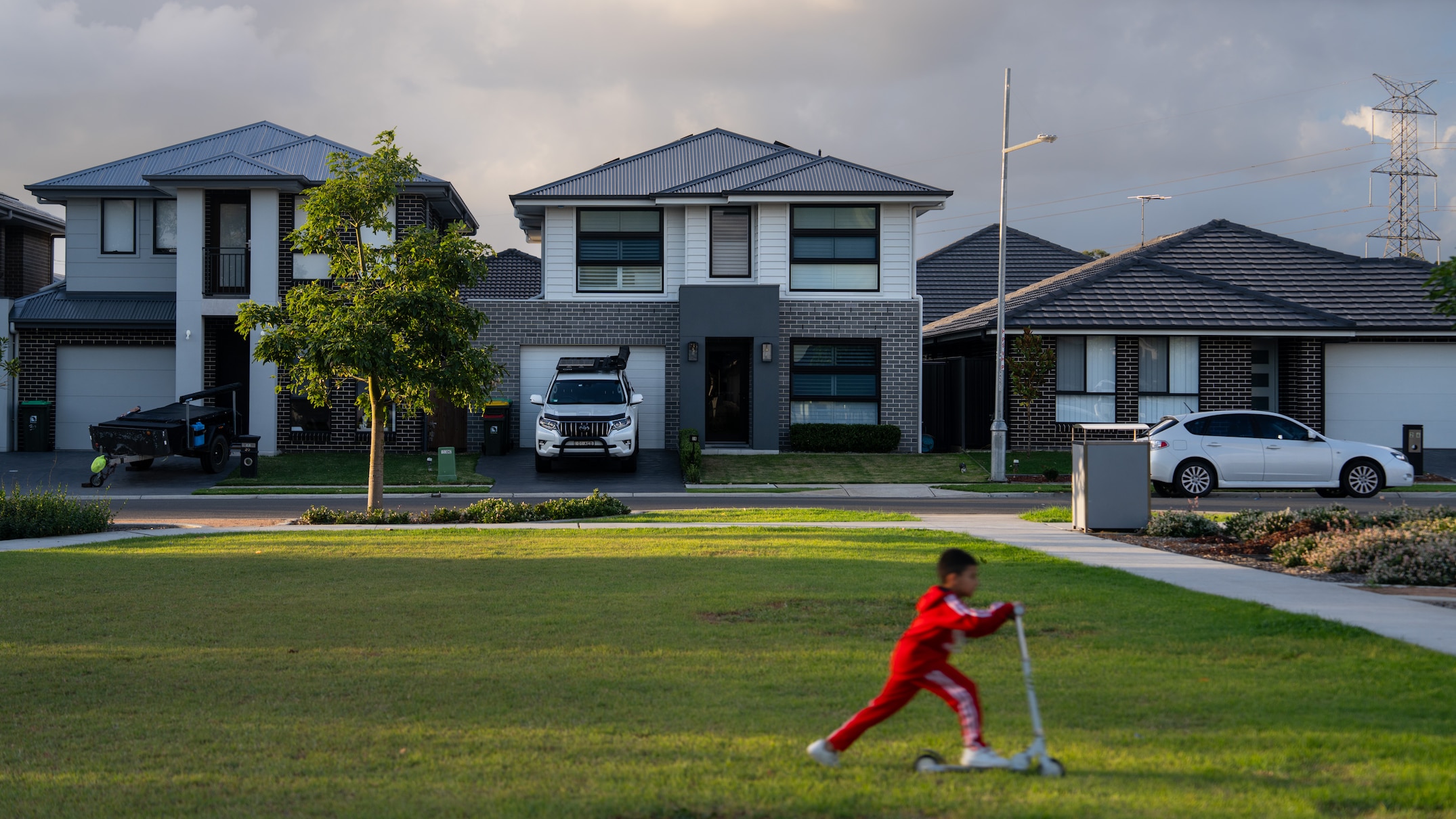Emily-Rose Barake lives down the road from Gaurav, across the road from a playground where she is sitting at golden hour watching her daughter zip around on a scooter. Next to her, a dad and his young boys play "backyard" cricket with plastic stumps.